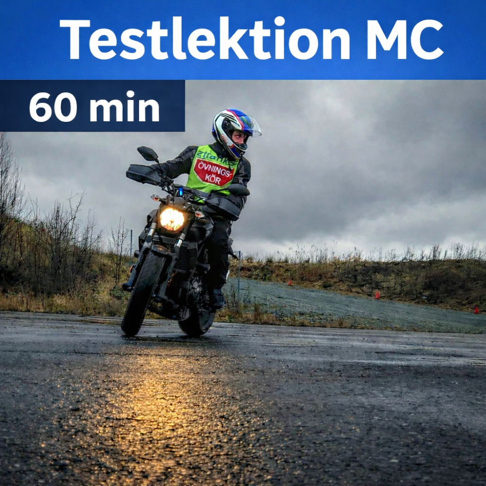 Nyfiken på motorcykel? Köp din testlektion här i vår e-handel och prova på utan press. Lektionen gäller endast nya elever och allt du behöver lånar du av oss – MC, kläder och skydd. Körkortstillstånd krävs.